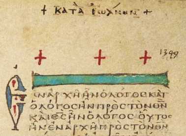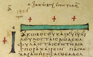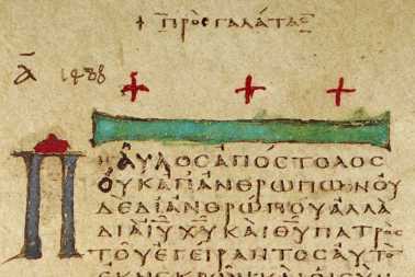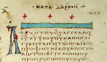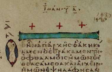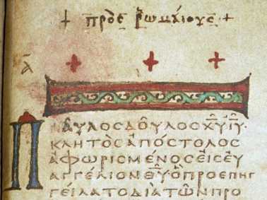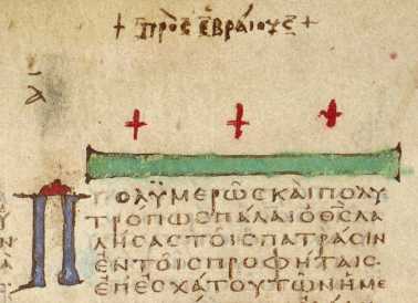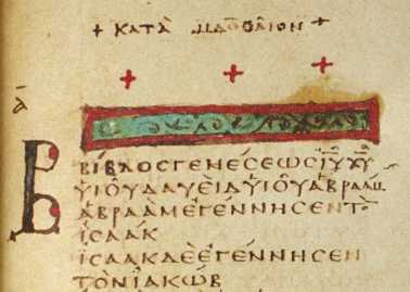 The book headings look all very similar. In Matthew and Romans some ornamentation is added within the green bar and a red contour surrounds it. The title of Revelation (minuscule) is completely different.