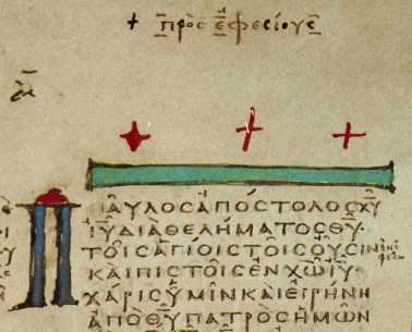 Please note the addition en efesw at the 3rd line of the letter to the Ephesians.
